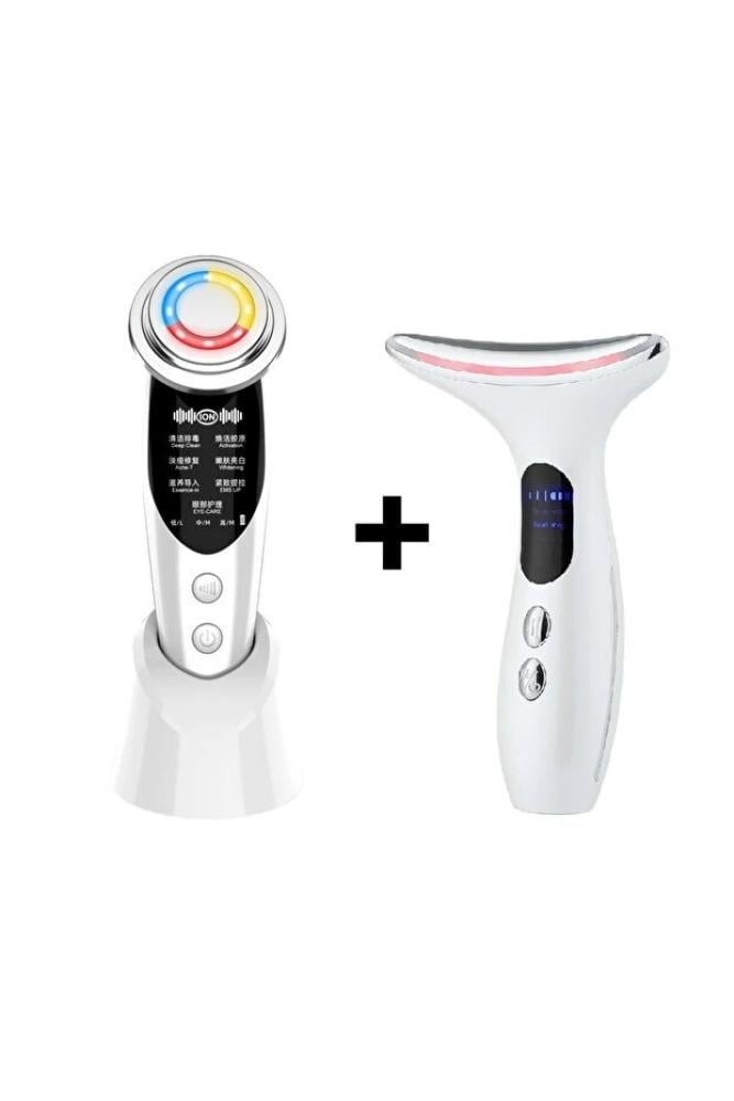 مجموعة العناية بالبشرة تضم 3 أجهزة شد الوجه 7 في 1، تجمع بين تقنيات EMS، RF، الضوء متعدد الألوان، والاهتزاز لتحسين مظهر البشرة في المنزل.